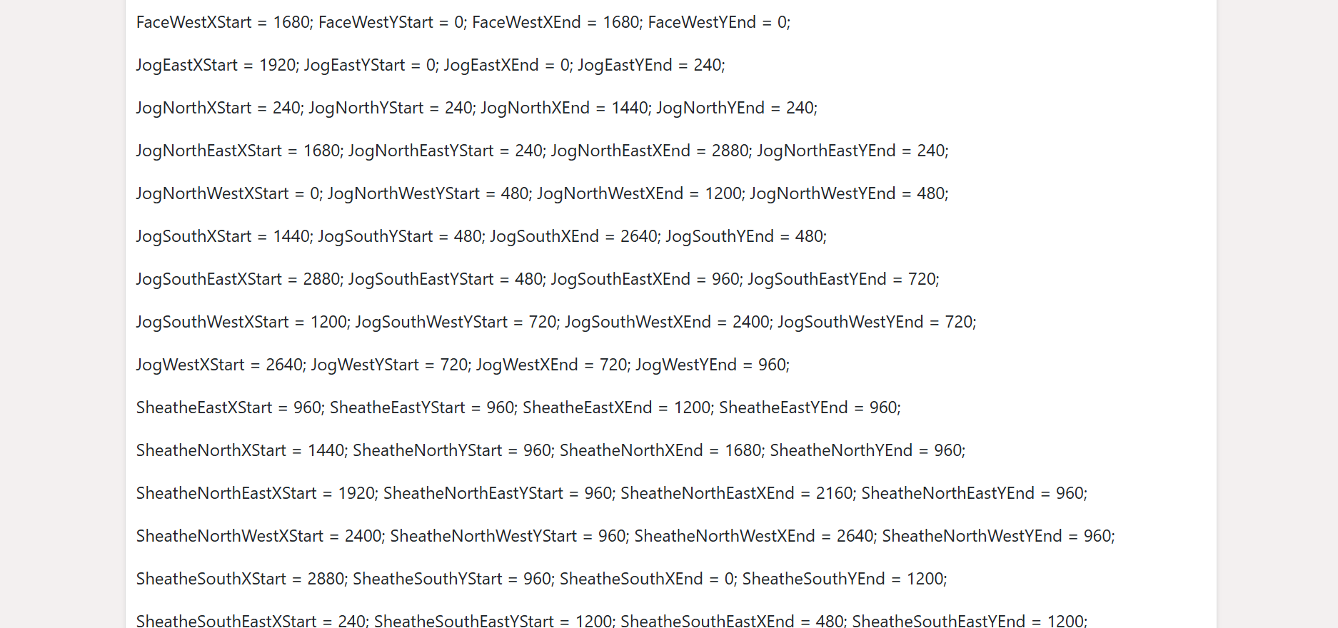 A web app made for a very specific purpose, to get the coordinates of textures in a spritesheets. An example being it will get the coordinates of textures ending with 1 and then the next largest number (run1-run6) which is useful if you need to iterate through textures to play an animation.